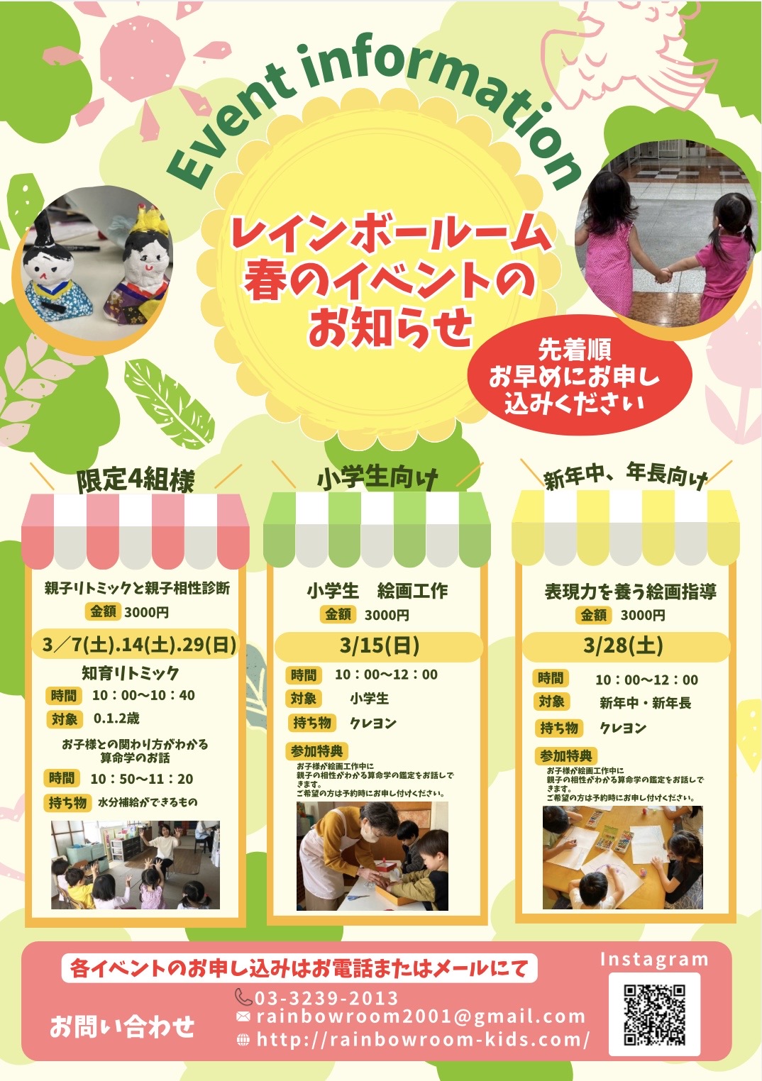 小学生向けの絵画や親子リトミックなどさまざまなイベントがございます!